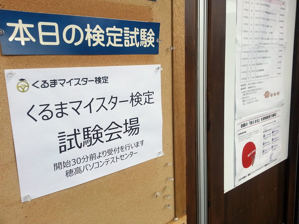 朝、検定試験会場(穂高パソコンテストセンター)の案内をみた若い兄さんが、「くるまマイスター検定」をここで受けられるのか、と聞いてきました。