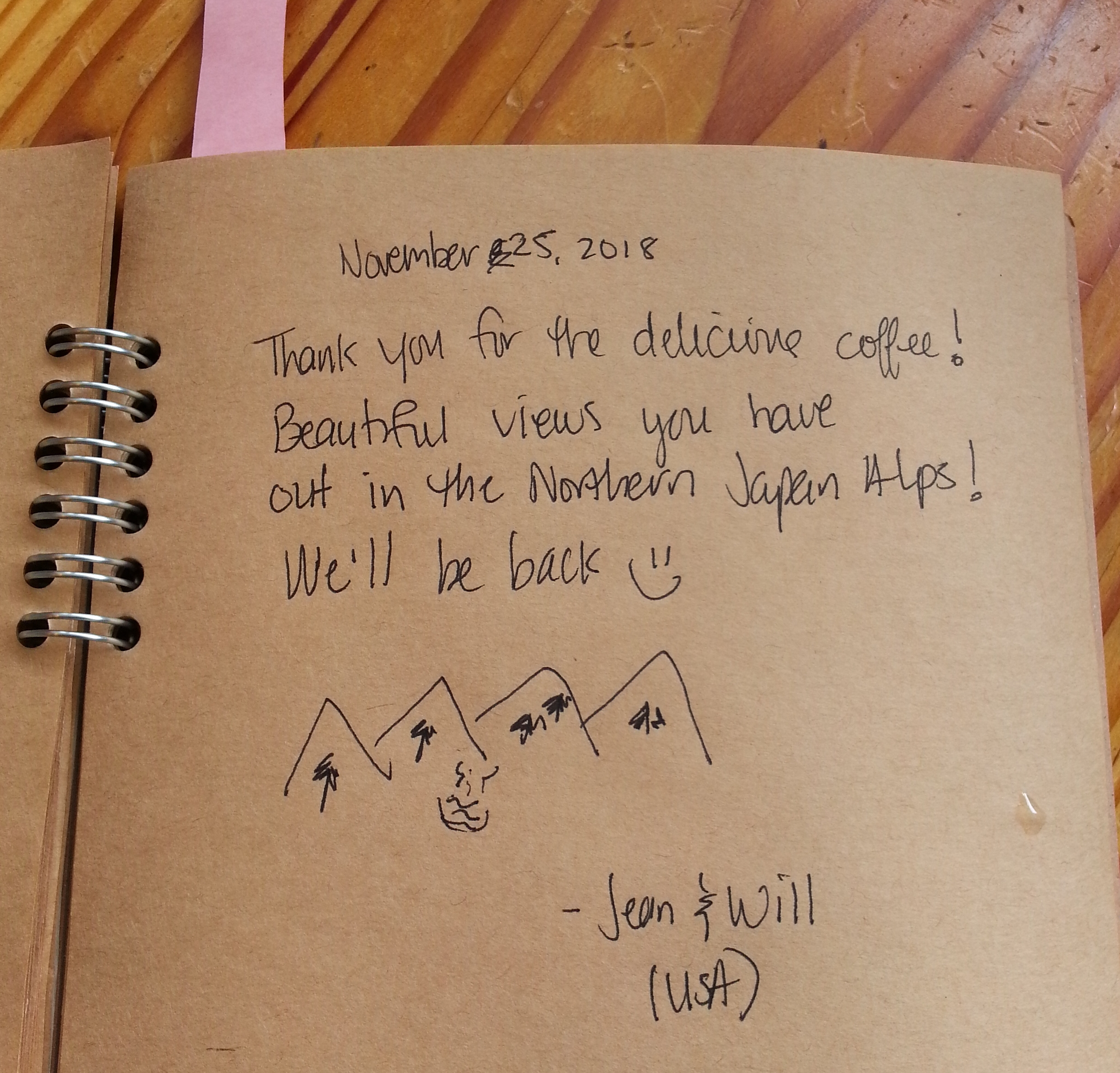 そのアメリカ人、なんでも書いて帳に、なんか書いてくださいました。おれのひげのこと書いてないかいね?なんて書いてあるだいね?達筆でわかんね。