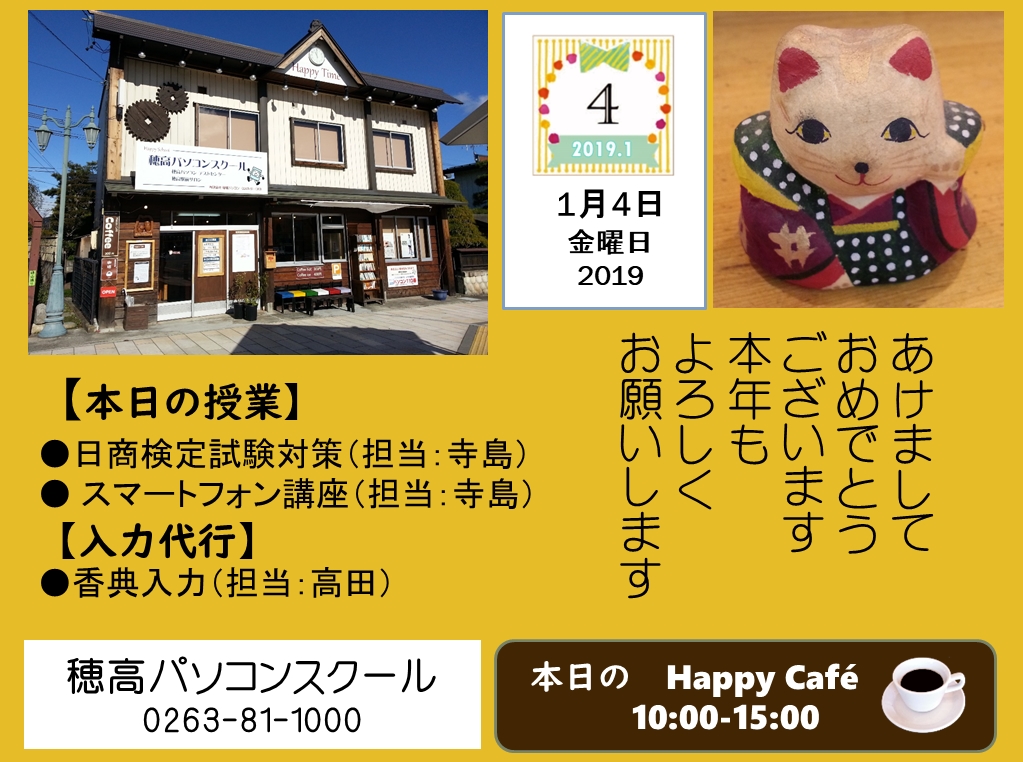 明日、1月4日より穂高パソコンスクール、新年スタートします。今年もどうぞよろしくお願いします。