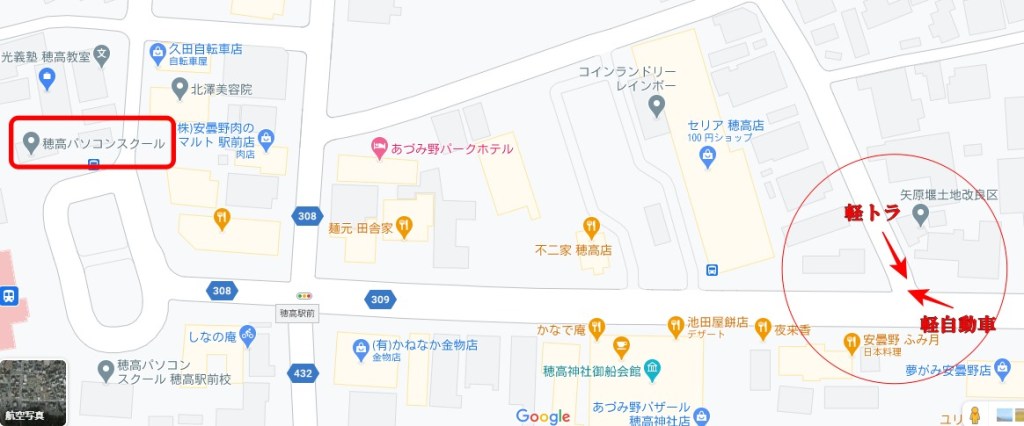軽トラがさとじの車。それが、ここを勢いよく右折してくる車が多いので非常に危険です。