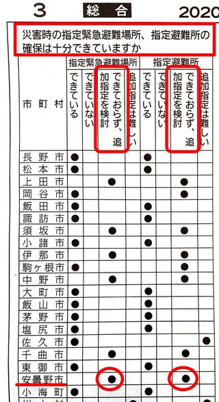 えっ!災害時の指定緊急避難所ができていないのですか!まさか!(信濃毎日新聞2020/10/10)
